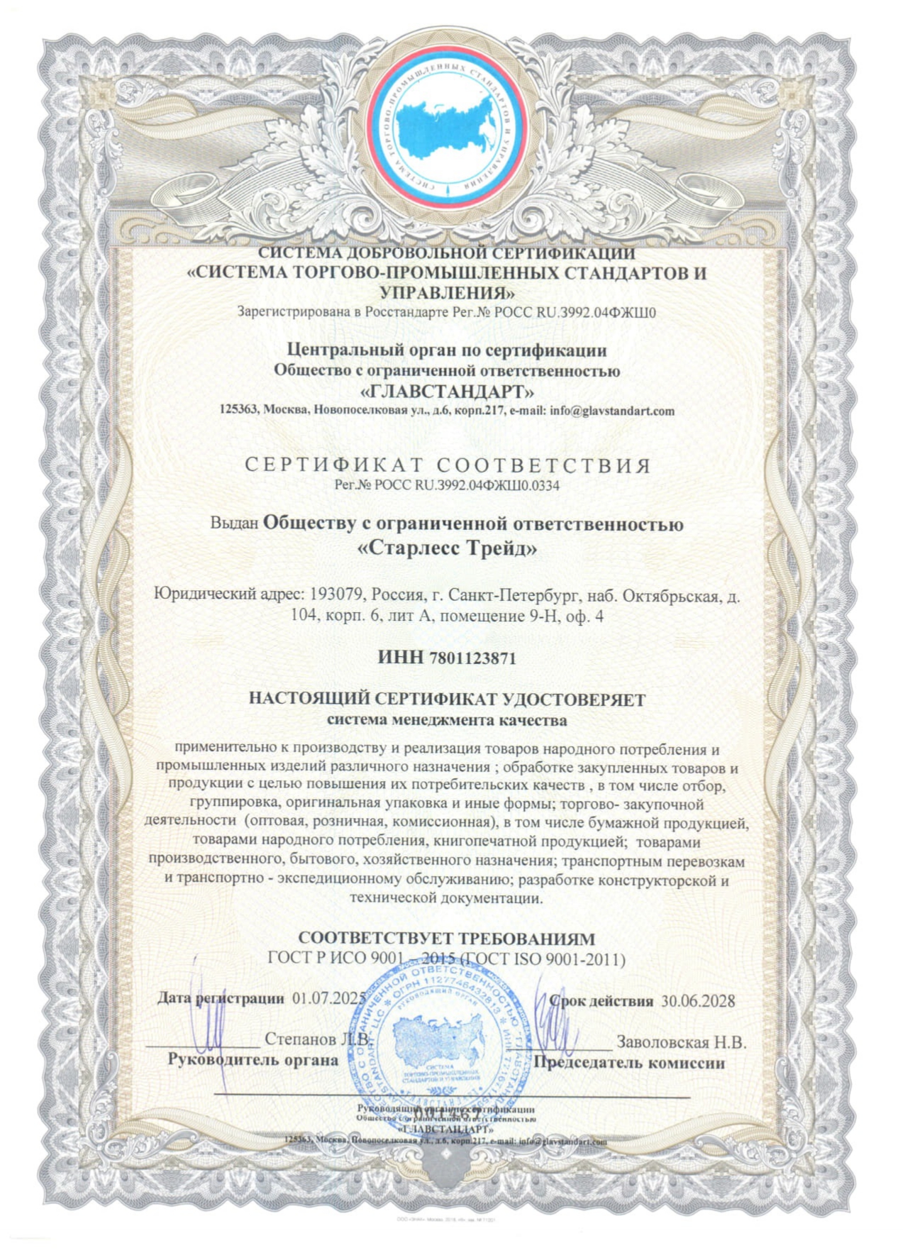 Наша компания «Старлесс Трейд» — надёжный российский производитель бумажной продукции гарантирует стабильные поставки и высокое качество на каждом этапе — от производства до доставки.